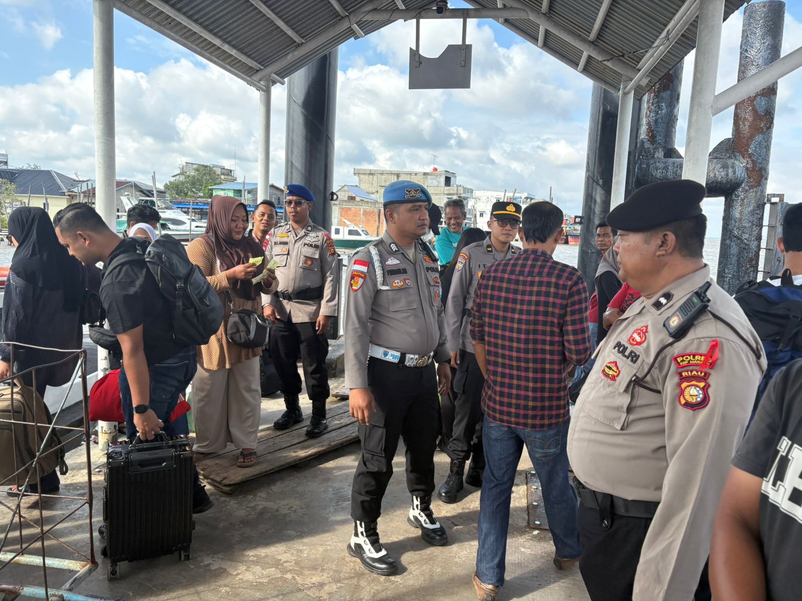 Meranti,- Polres Kepulauan Meranti Polda Riau gelar Pelayanan dalam Operasi Lilin Lancang Kuning 2025 oleh Personil di Pelabuhan Terminal Tanjung Harapan Kecamatan Tebing Tinggi Sabtu (20/12/2025).