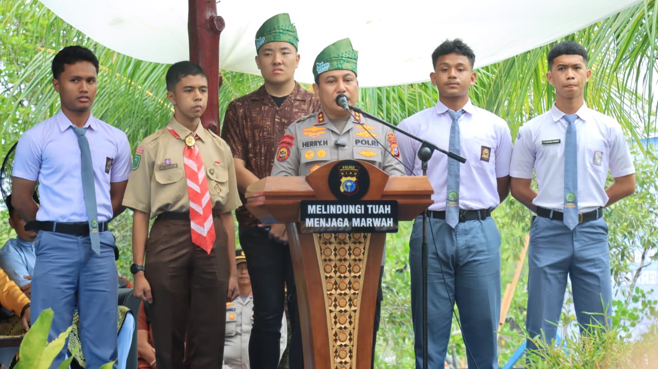 Selain itu, komitmen Polda Riau dalam mengimplementasikan Program Green Policing di wilayah Kabupaten Kepulauan Meranti. Kegiatan tersebut memiliki nilai strategis, tidak hanya dalam aspek pelestarian lingkungan, tetapi juga sebagai simbol kehadiran negara dalam menjaga keberlanjutan ekologi dan sosial masyarakat.