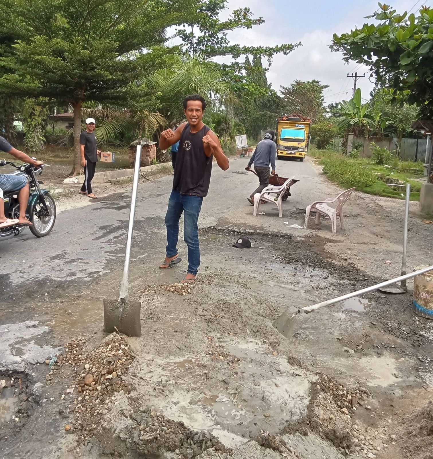 Aksi gotong royong ini menjadi bukti kuat bahwa semangat solidaritas di Desa Tanjung Medan masih sangat tinggi. Meski dilakukan dengan alat seadanya, antusiasme para pemuda terlihat jelas saat mereka bahu-membahu mengaduk semen dan meratakan material di badan jalan.